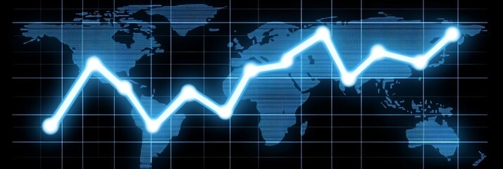 Global market trends with rising indicators on world map