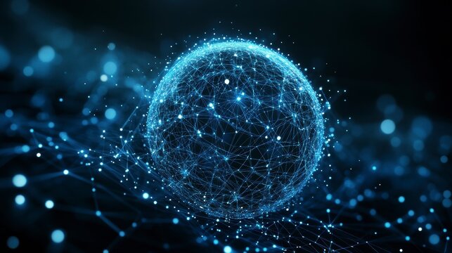 Abstract sphere network, digital connection, dark background, global concept, visual representation