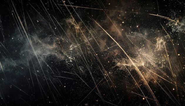 Dark abstract artwork with streaks, dust, and particles in shades of brown and gray