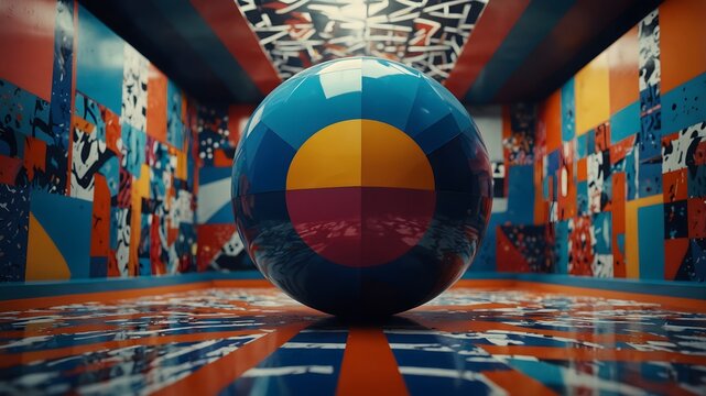 A single calm geometric shape centered amidst abstract, chaotic patterns, symbolizing peace and stability within disorder.