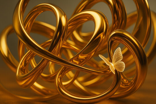 AI generated an abstract futuristic artwork filled with intertwined golden liquid metal loops reflecting warm light creating a luxurious fluid energetic visual with endless motion and modern sci fi
