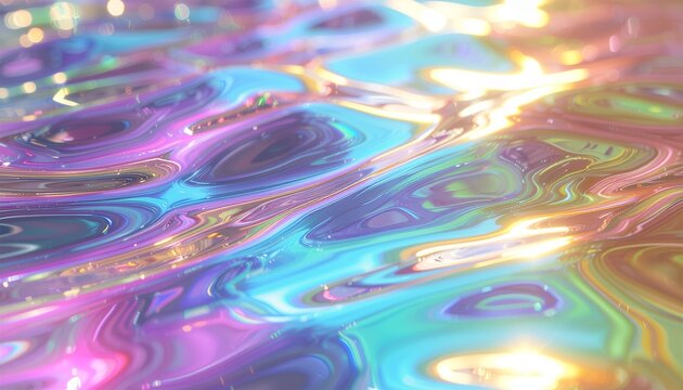 Abstract water surface with colorful gradient lighting and subtle reflections