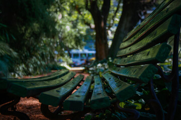 Abstrcat design of green leaves floating on lake with shiney droplets sparkling on the leaves. green background and texture with defth of field