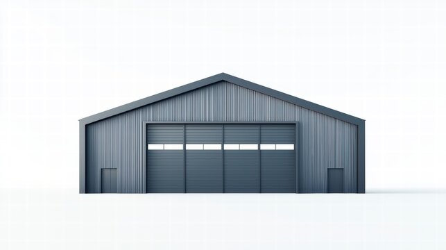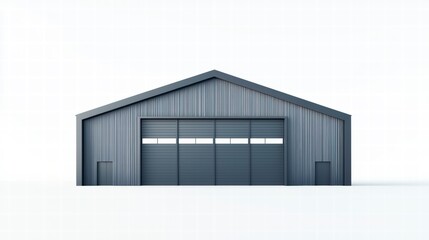 Industrial Facade: A modern, steel-clad industrial building with a gabled roof and large sliding doors, showcasing a sleek, minimalist design.