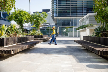 Entrepreneur walking in office premises on sunny day