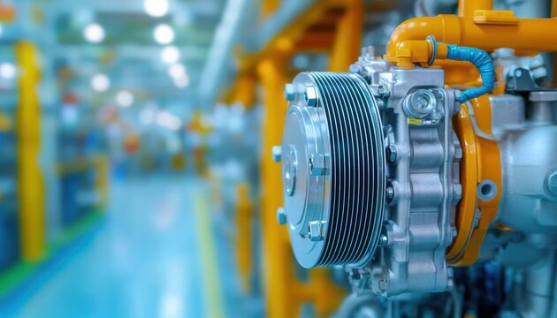 detail of the engine  fragment include ac compressor generator belt and pulley.