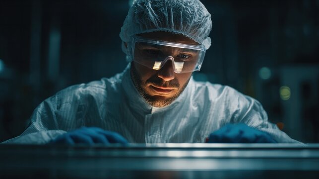 Scientific research event lab technician conducting experiments in a modern science facility under high-tech conditions