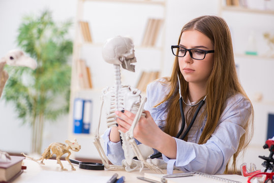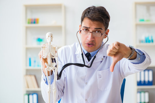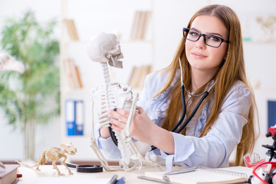 Doctor student studying the bones of skeleton