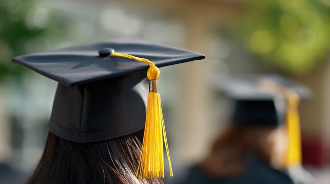 Graduation Cap Tassel Closeup Outdoor Background Education Achievement Celebration