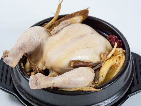 Korean food : Samgyetang(Ginseng Chicken Soup).  Samgyetang is a summer health food that is boiled with various medicinal herbs such as ginseng, jujube, glutinous rice, garlic, and chicken.