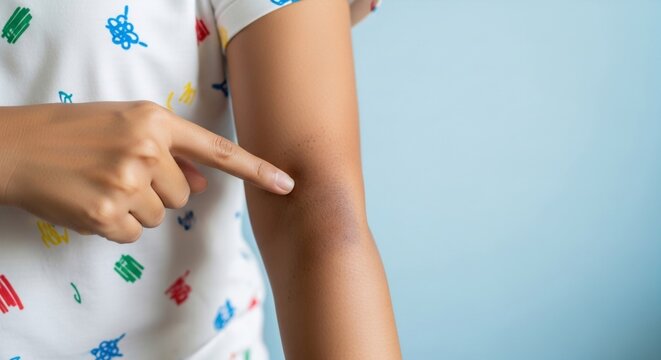 Dark patches on the skin and allergic rash at the child elbows known as acanthosis nigricans look like a darkened velvet.