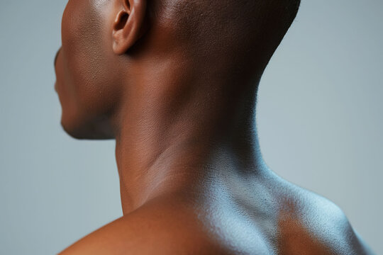 Acanthosis Nigricans Neck Darkening Photo: Close-up of Dark Skinned Man