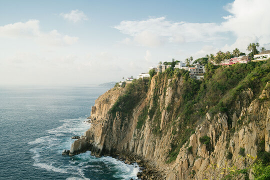 Beautiful view in Mexico Acapulco, of a mountain with a cliff
