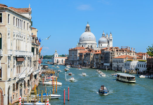 Looking at Santa Maria della Salute at a sunny day in Venice