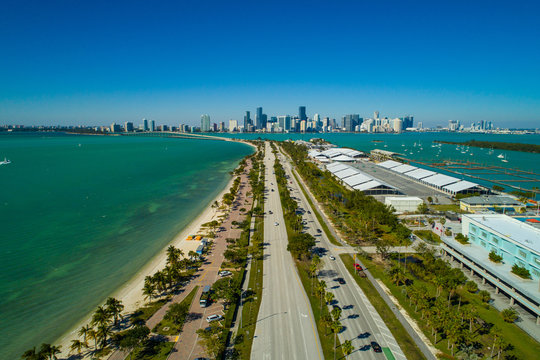 Aerial image Rickenbacker Causeway view of Downtown Brickell
