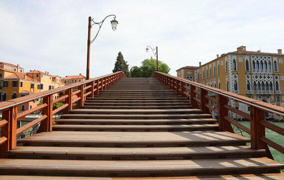 accademy bridge made with Wood in the Island of Venice in Italy without people