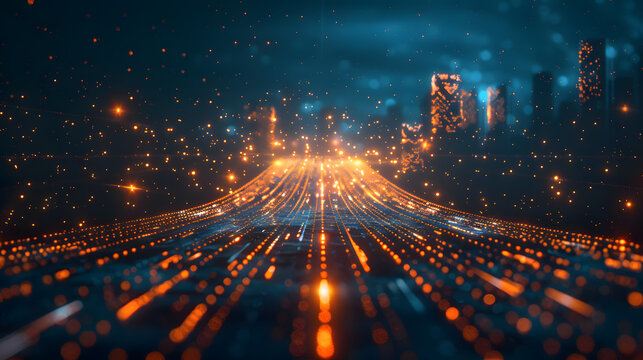 Abstract road leading to modern city, digitization concept virtual reality and communication