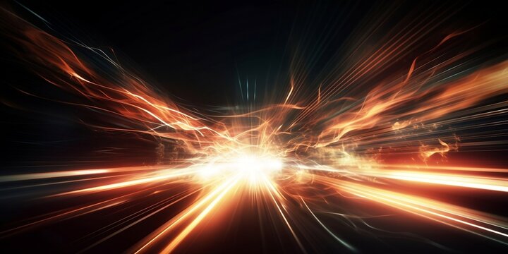 Dynamic warp speed radial light background with blue and orange streaks symbolizing energy acceleration cosmic journey and futuristic vision of limitless motion.