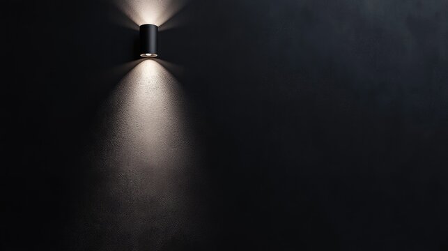 Scandinavian modern living room, smooth gray sofa, dark accent wall, wood coffee table, wall light, linen curtains, cozy contrast