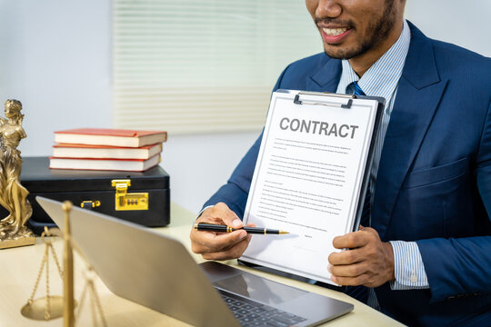 A male Asian lawyer in a formal suit handles contracts, agreements, legal obligations, and considerations of rights and liberties, focusing on constitutional and human rights in legal practice.