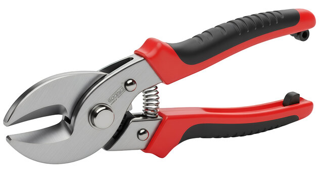 Red and black handled bolt cutters isolated on transparent background