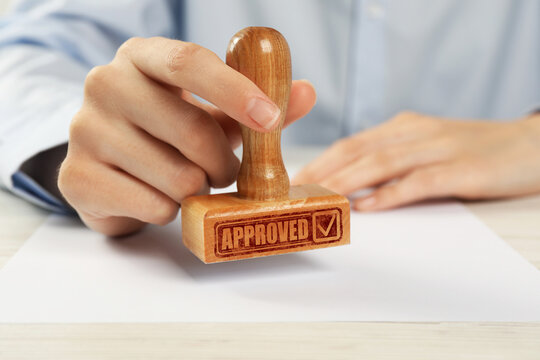 Wooden Approved Stamp on Official Document