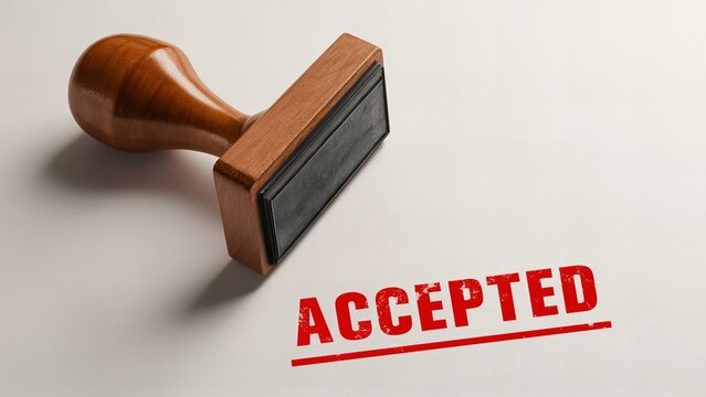 Businessman hand stamping an approved stamp on a text document at a table with a contract form paper in the background.