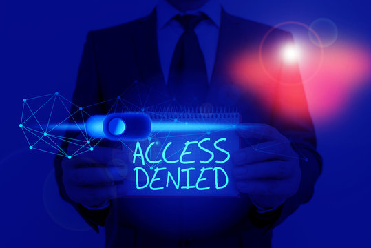 Word writing text Access Denied. Business photo showcasing error message shown when you do not have access rights