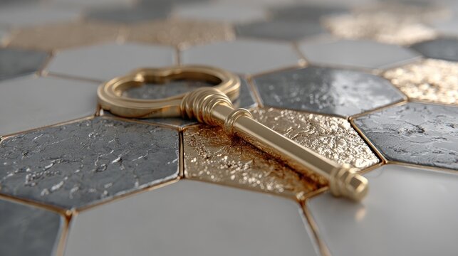 Hovering glass pyramid projecting blue holographic data over reflective tiled floor