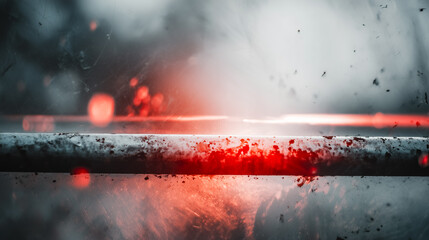 Futuristic barricade image with warning light and dirty metal