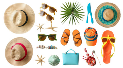 Set of beach accessories isolated on white background png transparent