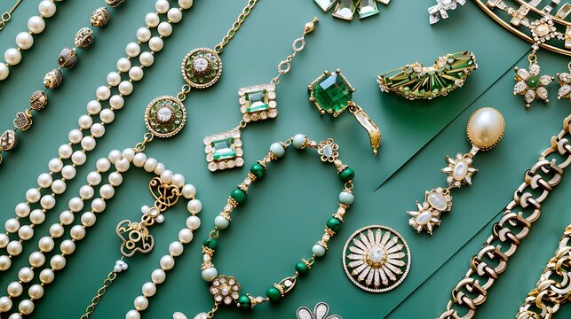 Jewelry and accessories for women clothing bijouterie fashion and design on green background