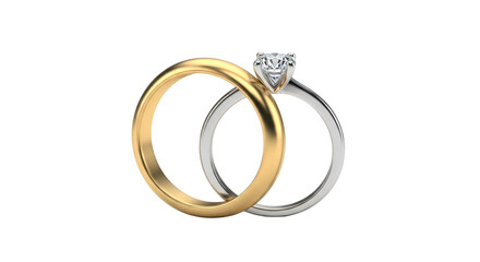 Isolated set of rings jewelry, engagement ring, round brilliant cut diamond solitaire