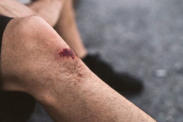 Car crash or accident. Front fender and light damage and scratchs on bumper. Broken vehicle detail or close up.