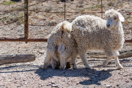 the accomplice and the fugitive Angora goats out of the fence,  near Bracefield, Karoo, South Africa