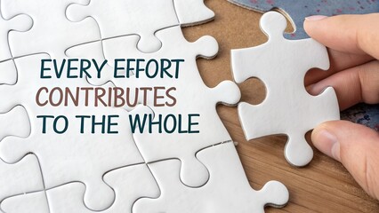 Hand Completing Puzzle Piece with Message on Contribution to Whole