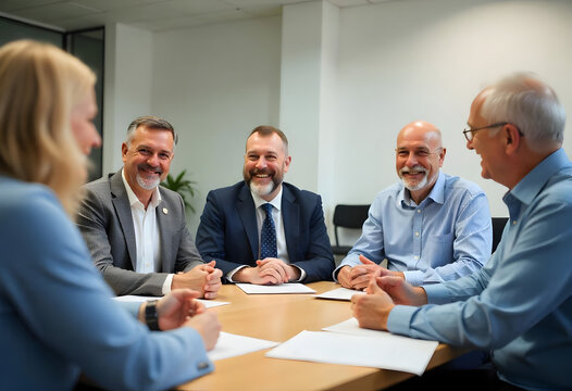 Group of a senior older business professionals sitting at the office table during the meeting