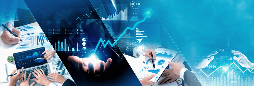 Futuristic business digital financial data technology concept for future big data analytic and business intelligence research for businessman analyst invest decisions making panoramic banner vexel
