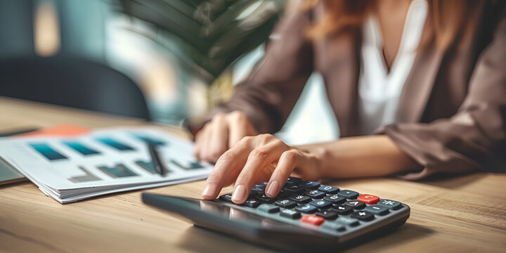 A business professional working at a desk with a laptop and financial documents. represents finance, accounting, bookkeeping, payroll management, tax audits, business administration, budget planning