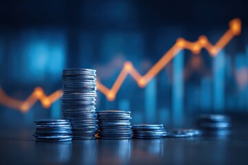 Stacks of coins with a rising financial graph in the background, symbolizing growth, investment, and economic progress
