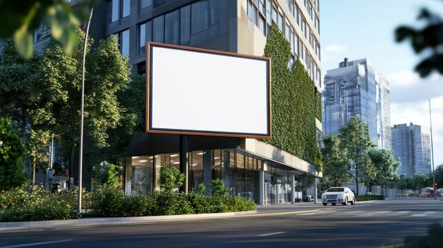 Blank vertical banner on exhibition floor with blurred people walking. Event display stand ready for custom branding and promotion. Trade show booth setup.
