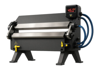 Industrial control panel featuring smiley display, emergency stop button, joystick knobs