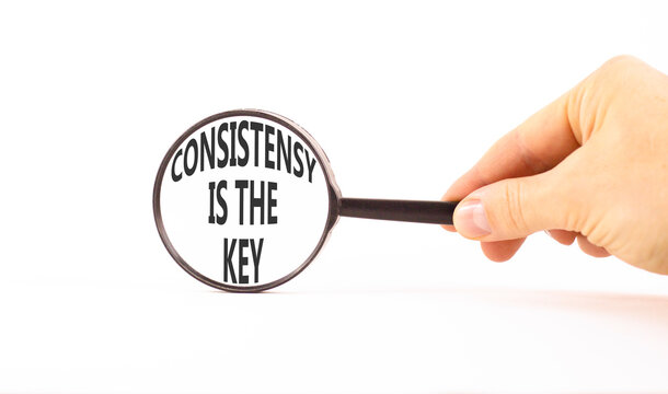Consistency is the key symbol. Concept words Consistency is the key on beautiful magnifying glass. Beautiful white background. Business consistency is the key concept. Copy space.