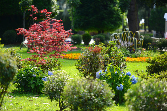 Japanese red maple (Acer palmatum japonica red) in a park. Batumi