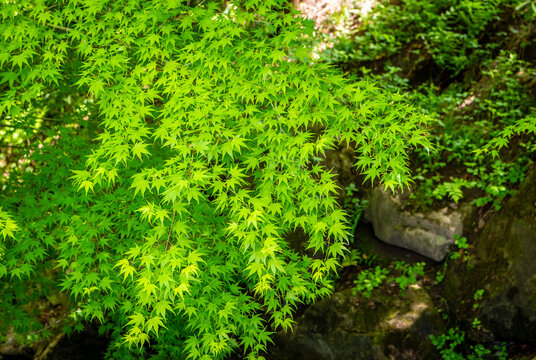 spring coloured fresh green Leaves of Acer Palmatum, Japanese Maple tree