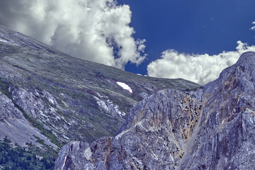 Rolling mountains with some residual snow in the summer is a unique sight of YT, Canada