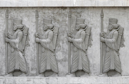 Achaemenid soldiers, cement relief on wall