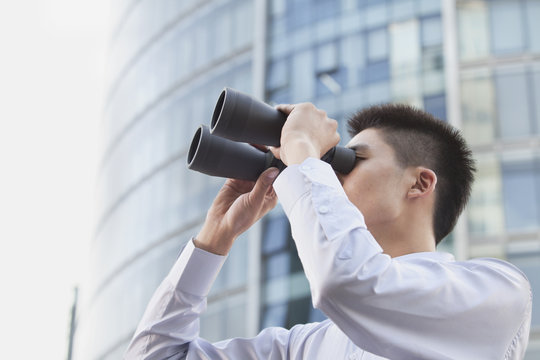 Young Businessman Looking Through Binoculars