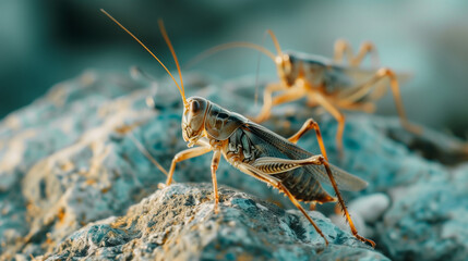 cricket insects on rocks, slightly blurred background, Ai generated Images