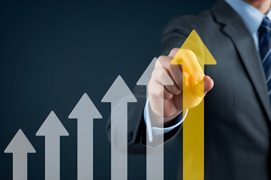 Conceptual Growth Illustration with Hand Adjusting Prominent Yellow Arrow